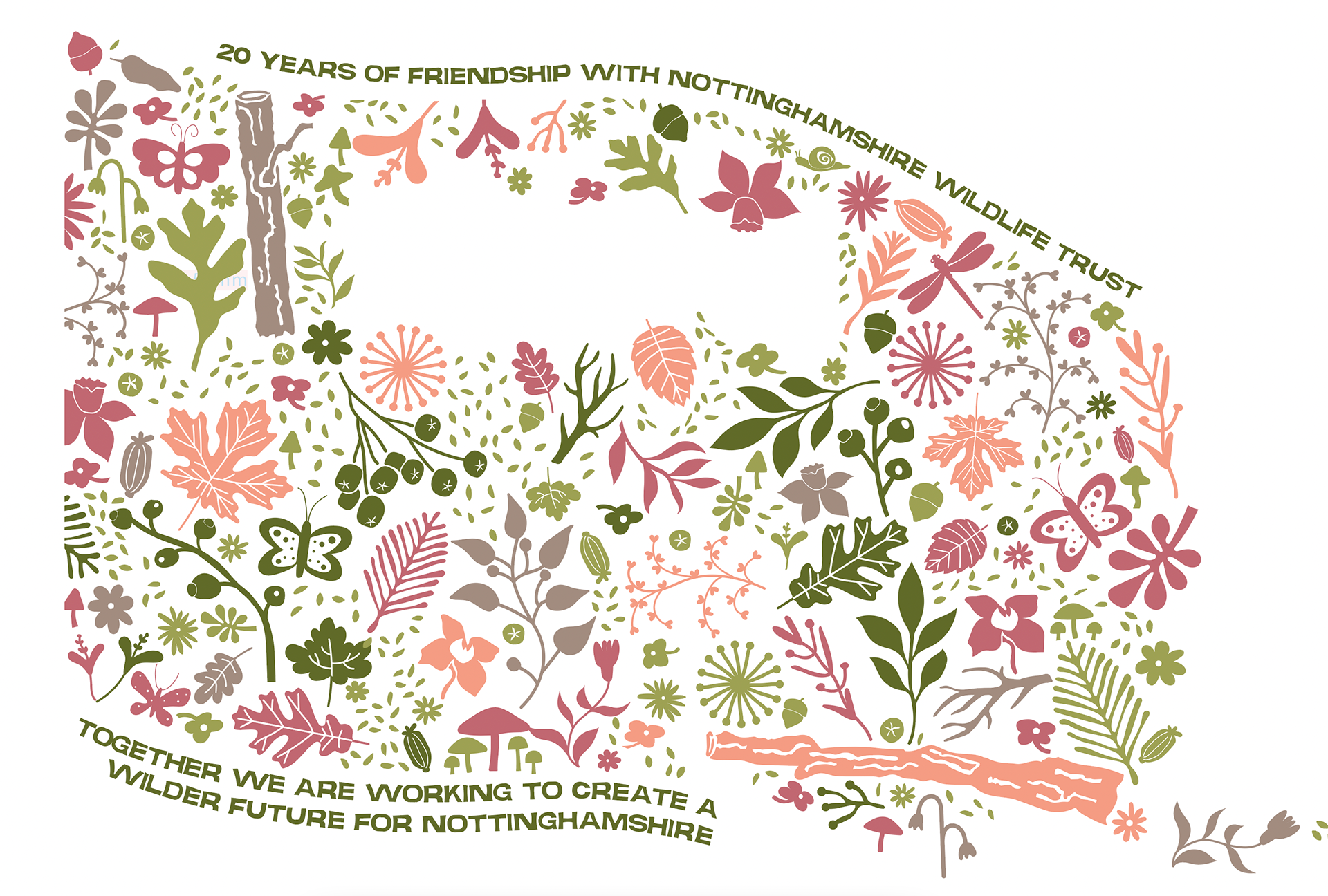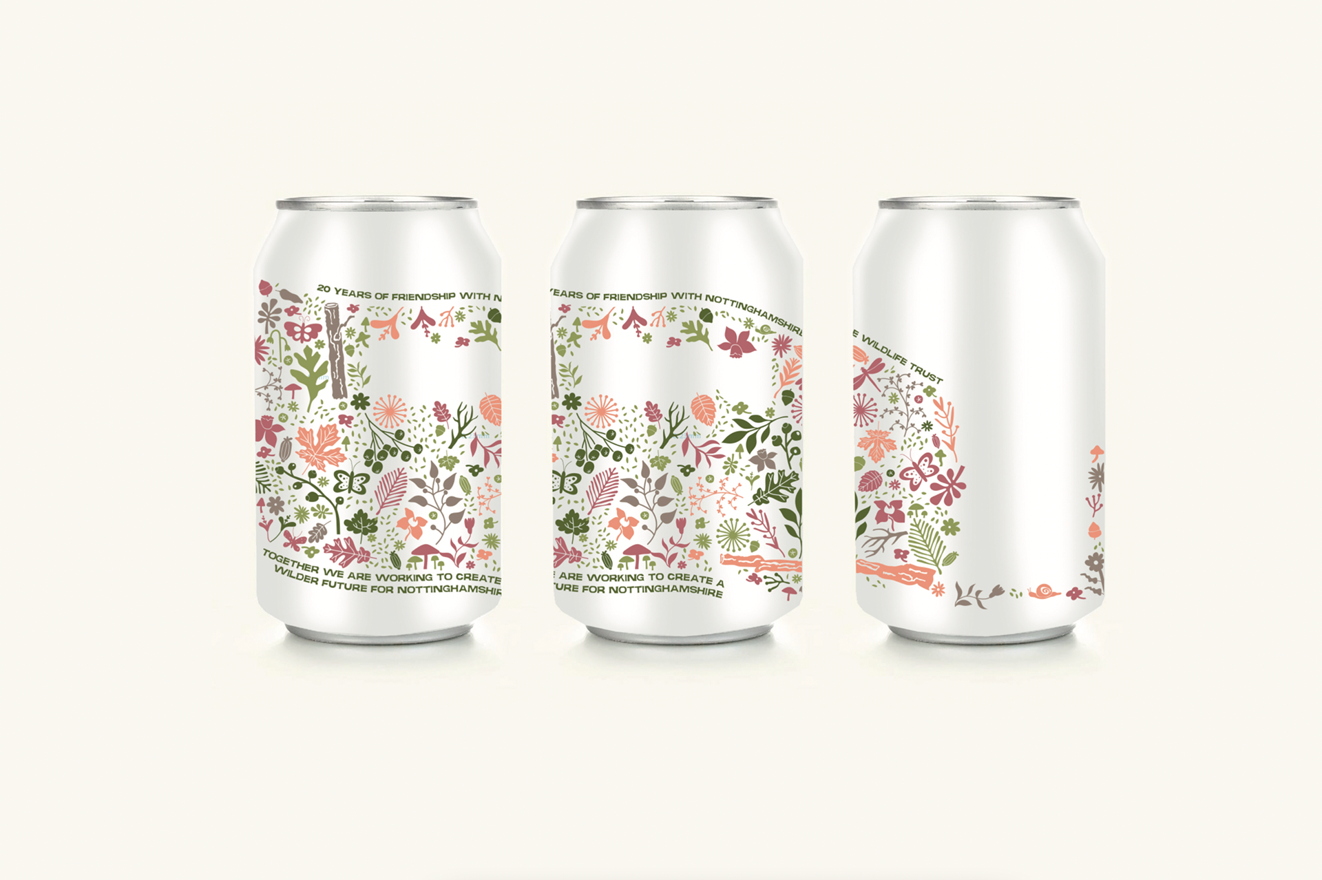 Castle Rock Brewery and Nottinghamshire Wildlife Trust are celebrating 20 years of friendship in 2022! I proposed a colourful can using an intricate pattern of woodland finds leaving space for all the important info. There is even a snail or two.